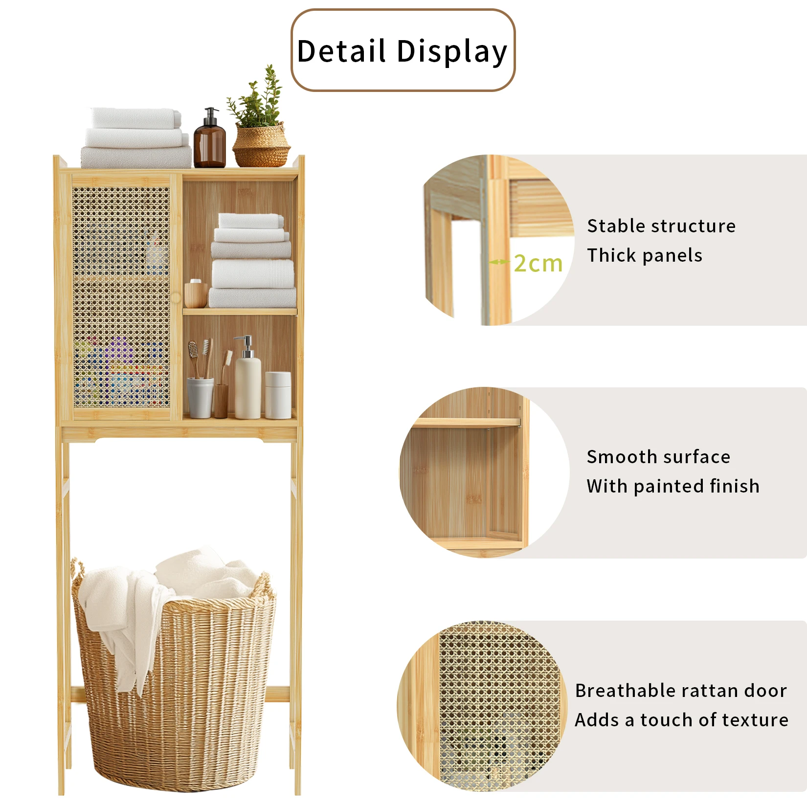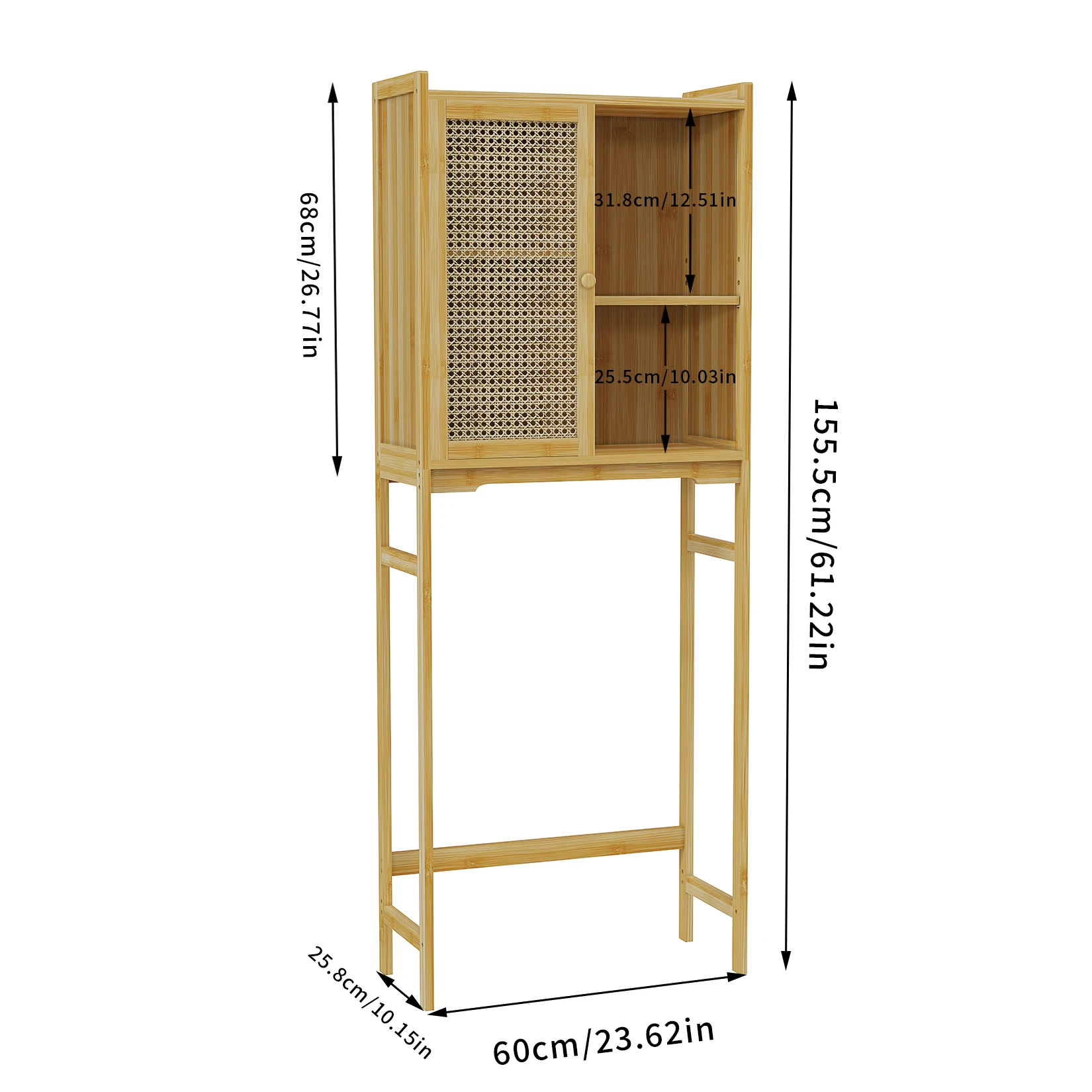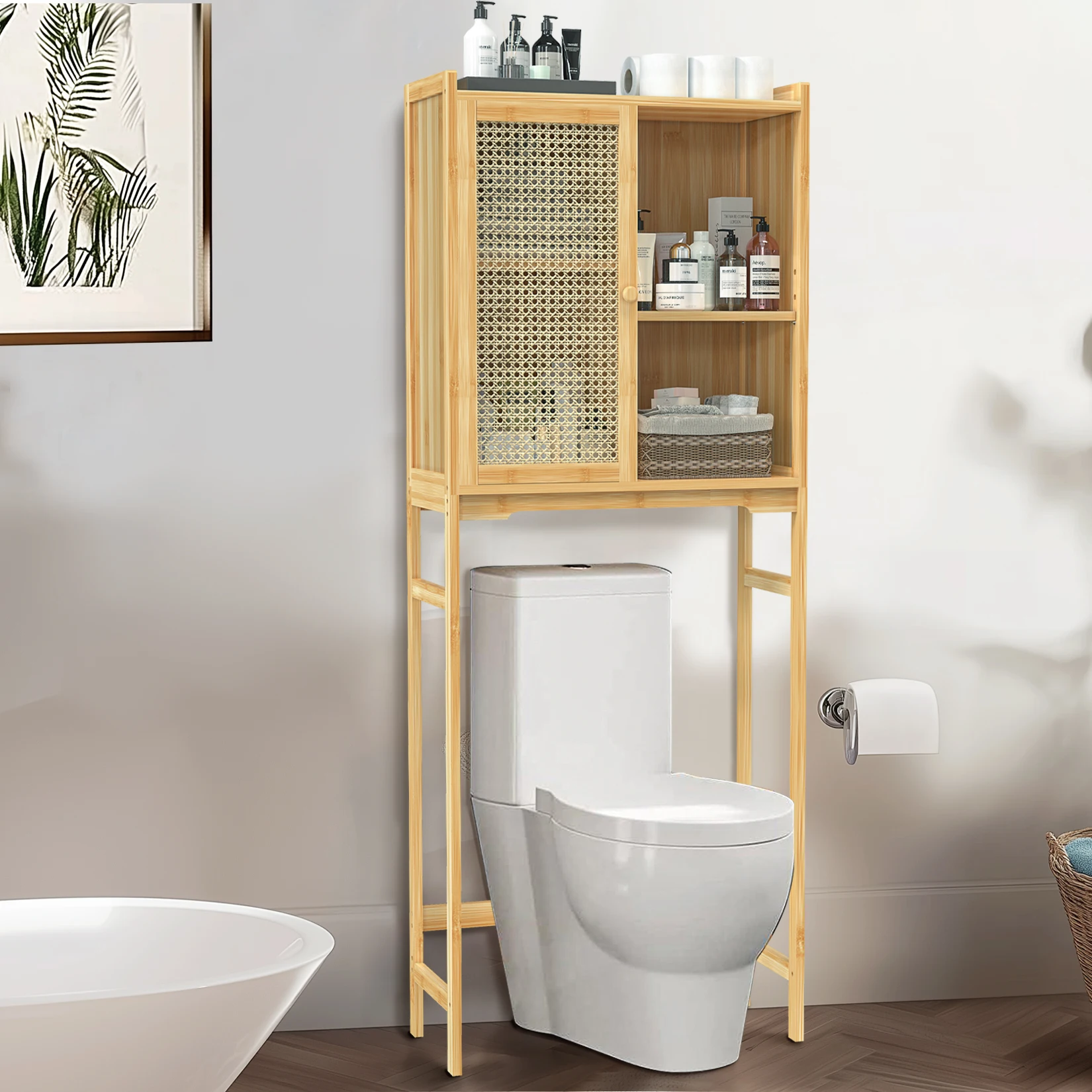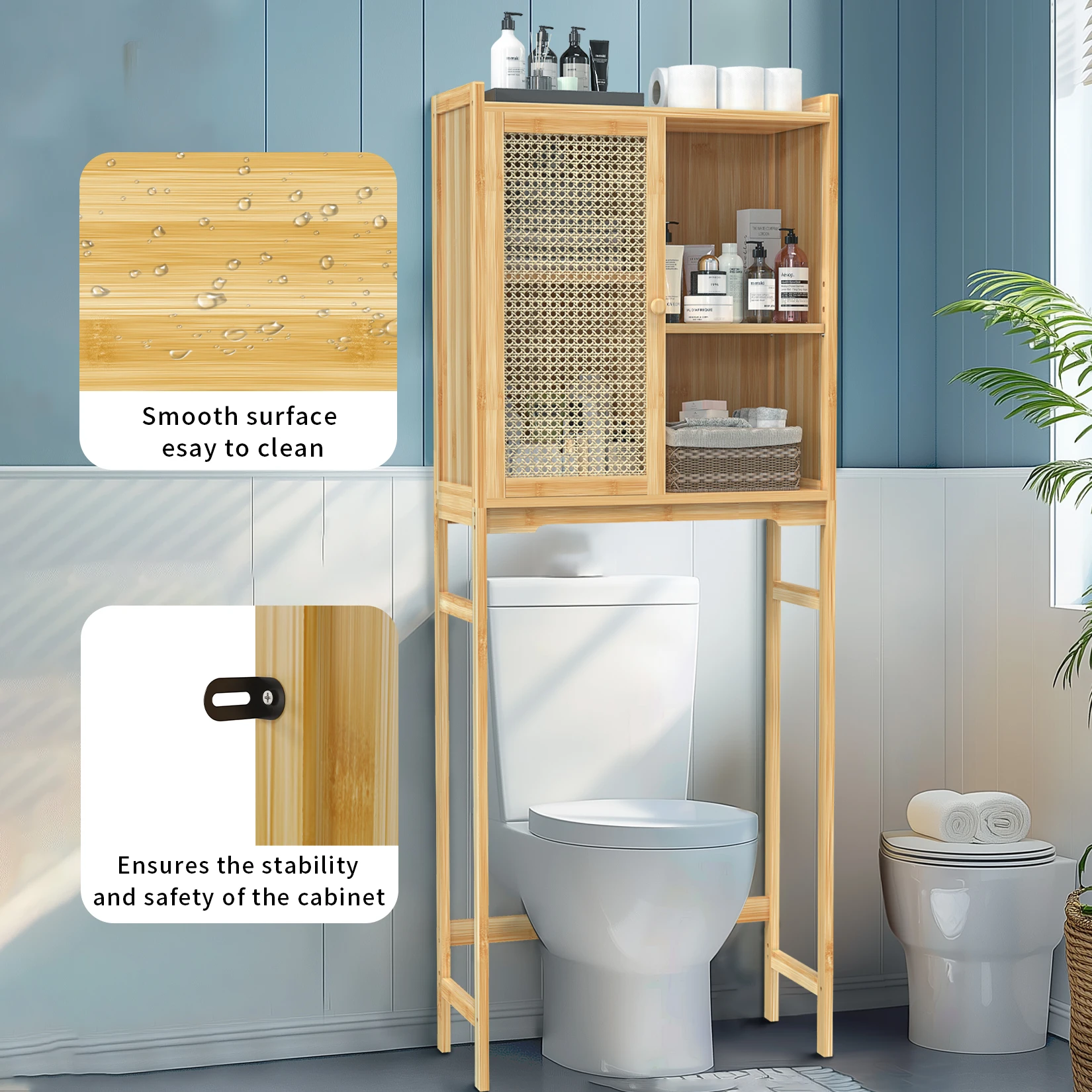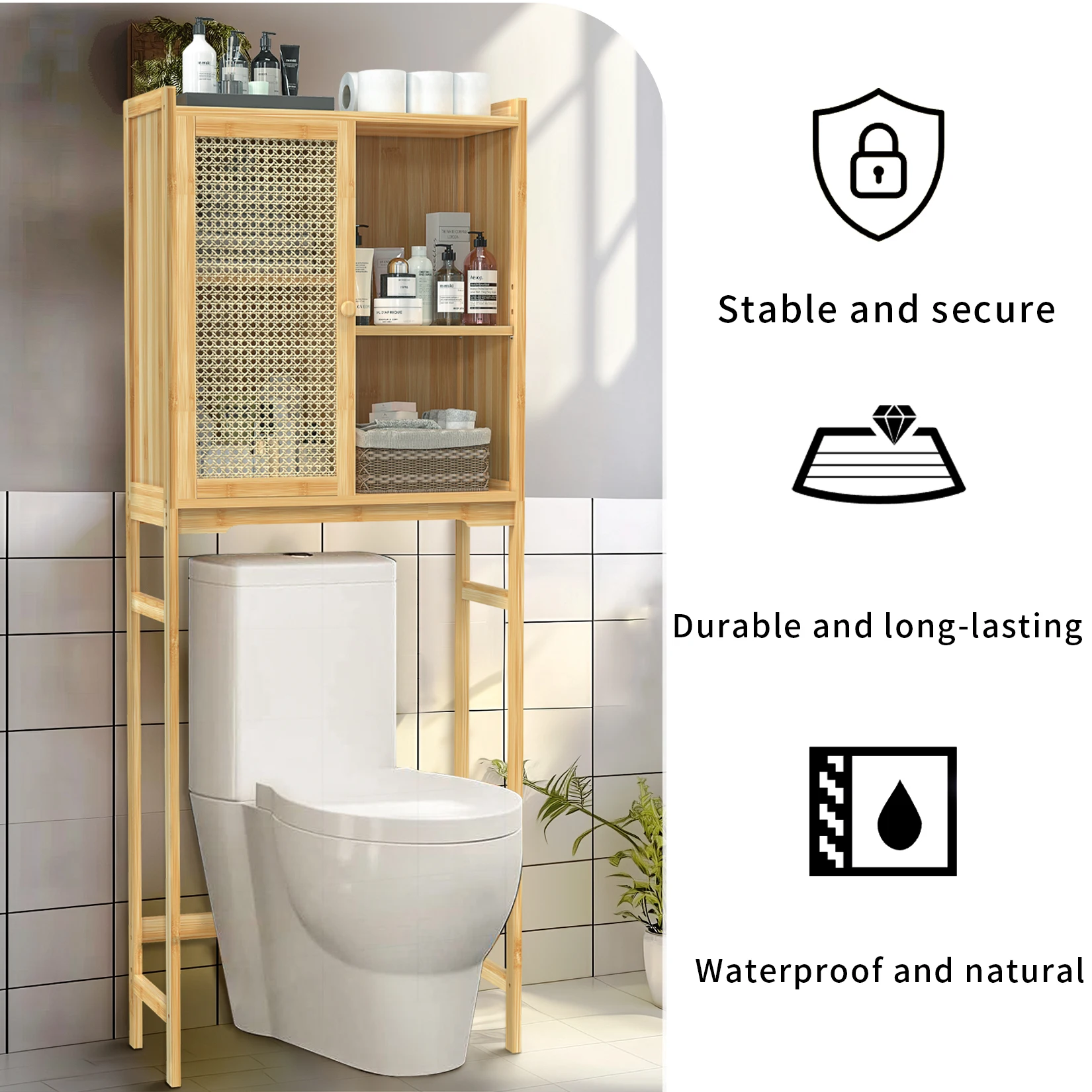 SPECIFICATIONSBrand Name: WisforHign-concerned Chemical: NoneInstallation Method: AssemblyMaterial: BambooModel Number: JJ-ZZ1361Origin: Mainland ChinaType: Toilet Storage CabinetMounting: Free StandingRoom: Bathroom Toilet, Washing MachineFeature: W