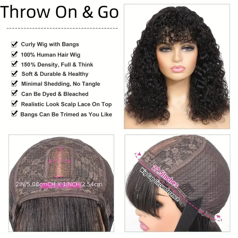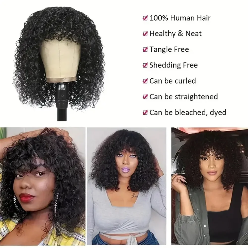Highly Rated 2x1 Middle Part Lace Wig Bob Wigs Full Machine Made Kinky Curly Human Hair Wigs With Bangs 100% Short Bob Human Hair Wigs (top Rated) [wGxqT62g]