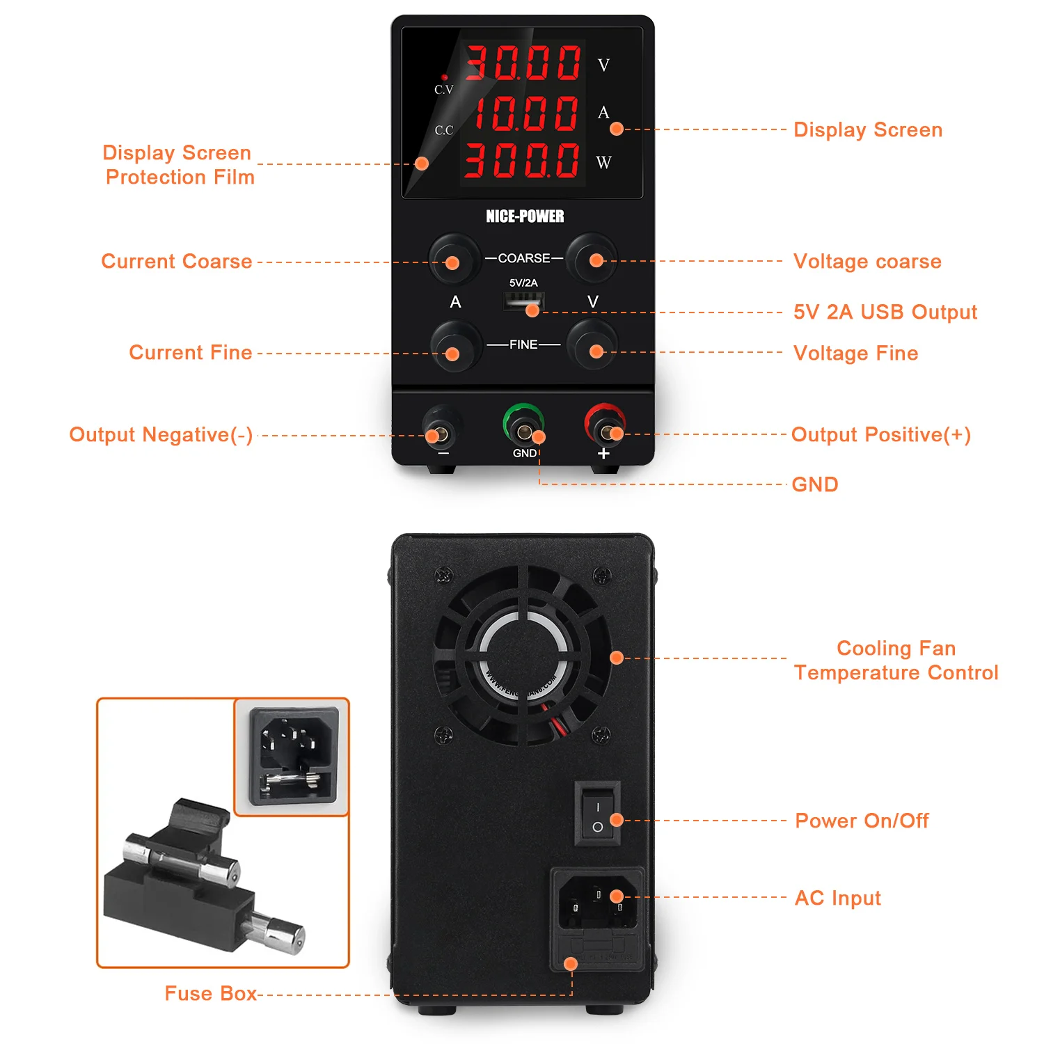 SPECIFICATIONSBrand Name: KUAIQU,NICE-POWERCertification: CE,FCC,RoHS,CE,FCC,RoHSFunction 1: 4-Digits LCD displayFunction 10: For electronics repairFunction 11: variable Voltage Current Power Supply For load testingFunction 12: Bench Power Supply Buc
