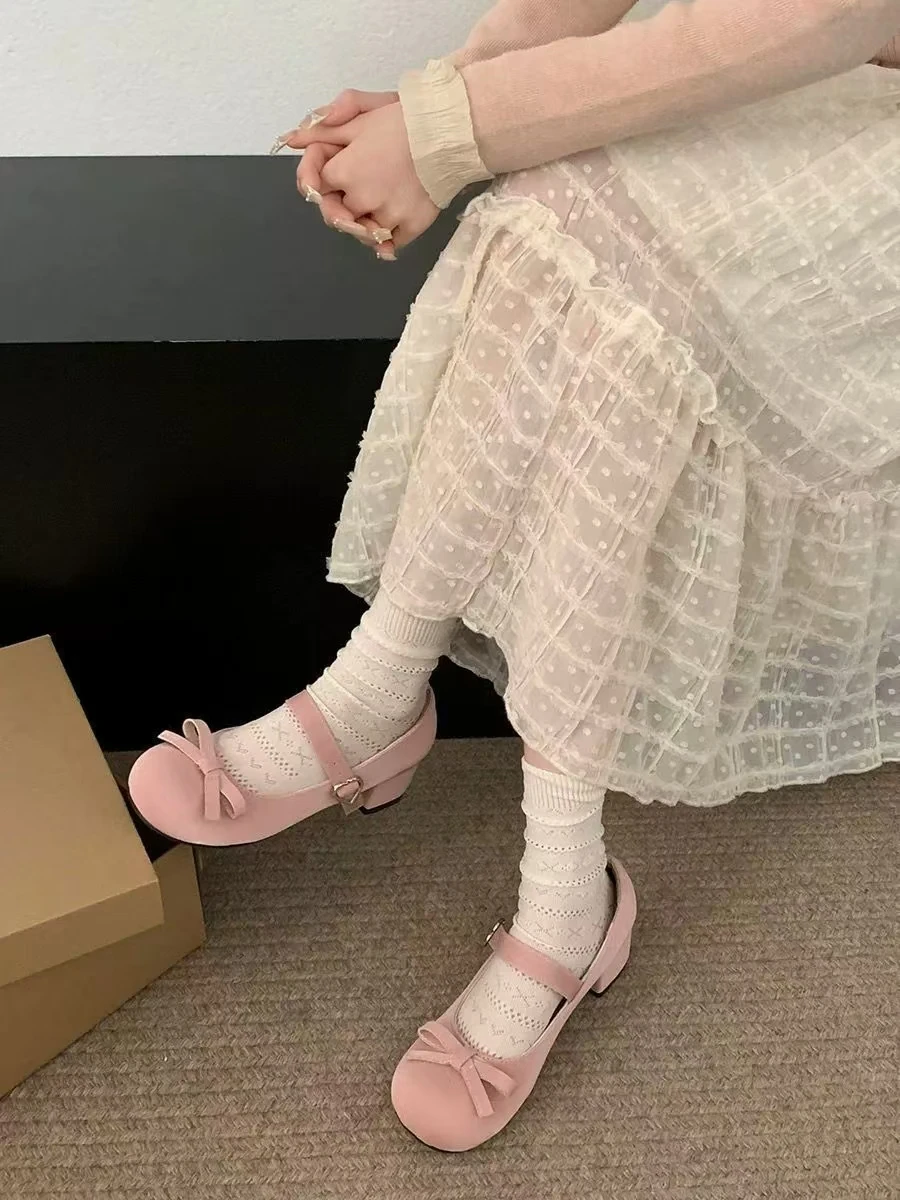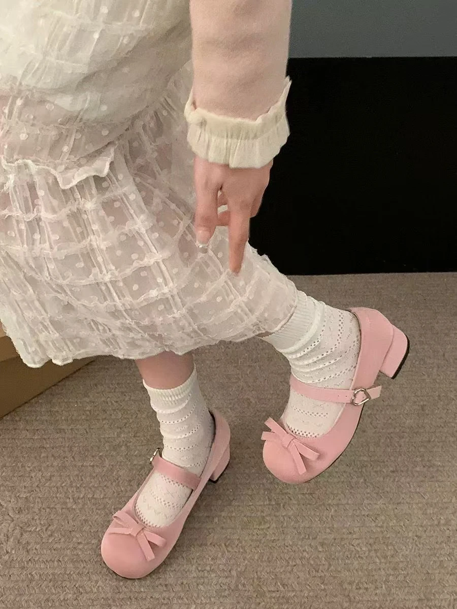 vzyzv - New Spring Summer Thick Heel Pink Shoes Elegant Bow Lolita Shoes College Girls High Heels Fashion Women Sandals