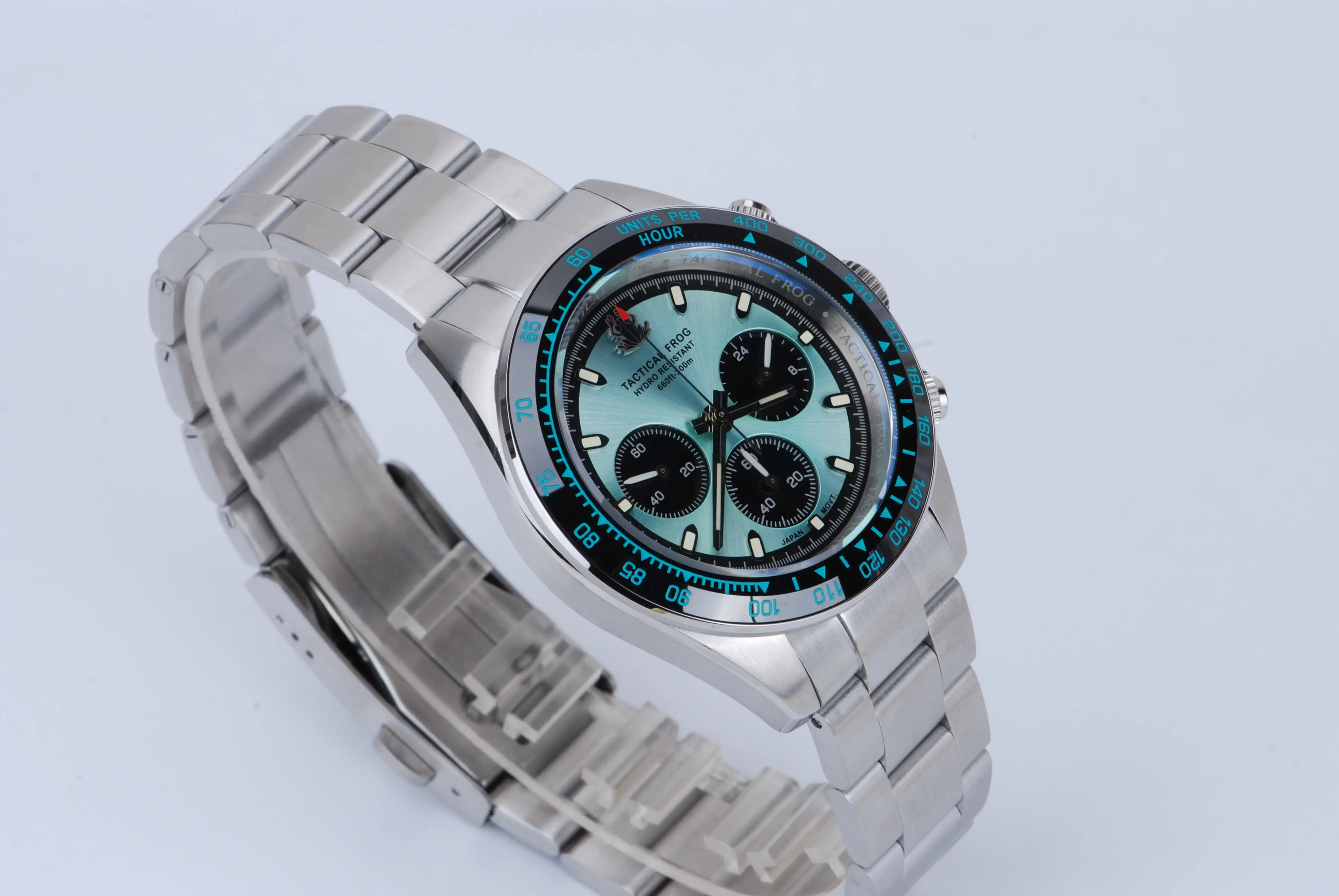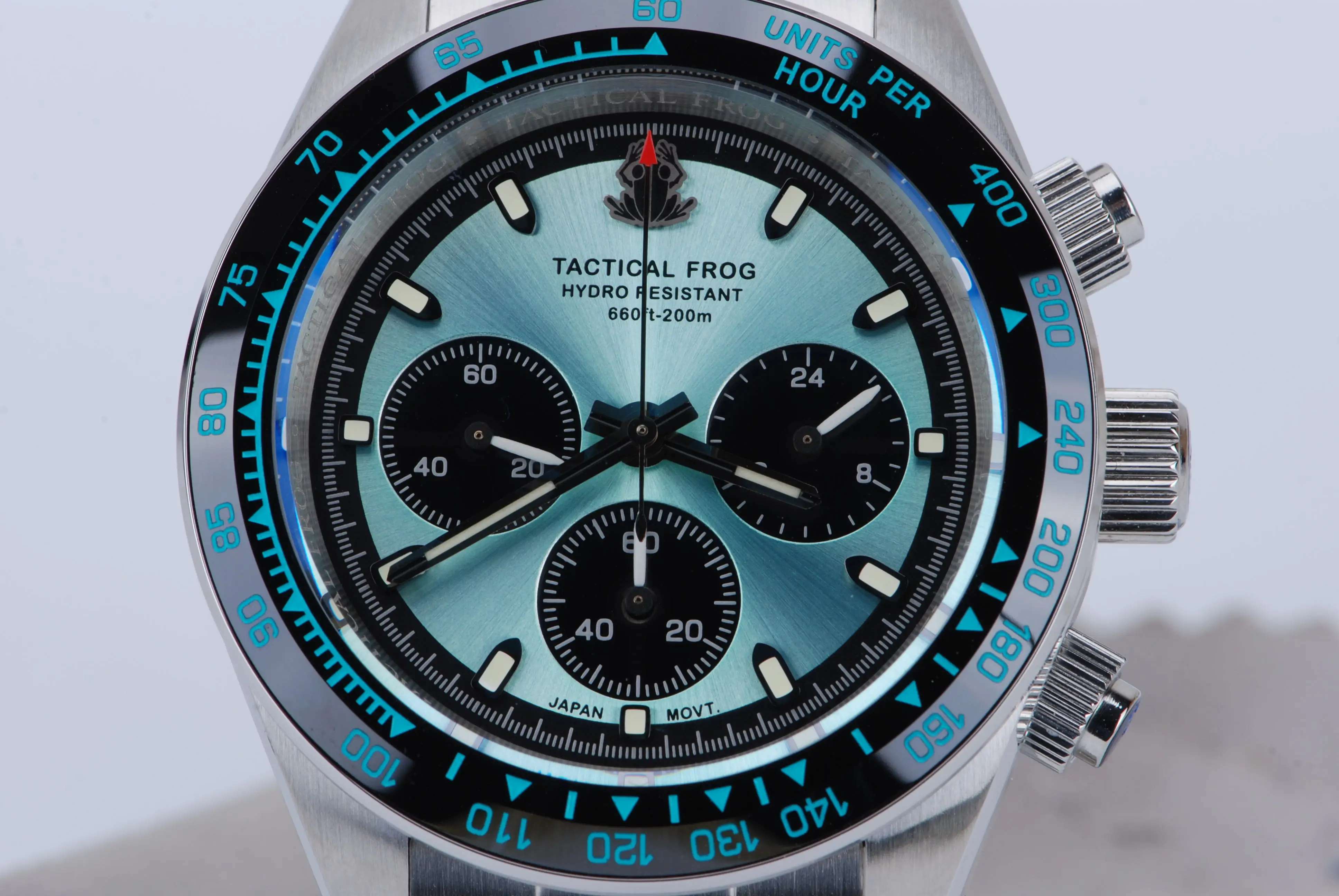 Tactical Frog VS75 Solar Chronograph Watch V2 41mm Quartz Movement Sapphire C3 Luminous 200M Waterproof Luxury Men's WatchWatch Specification:Brand: Tactical frogMovement: Solar-powered VS75 movenent (quartz movement)Note: Unlike conventional quartz