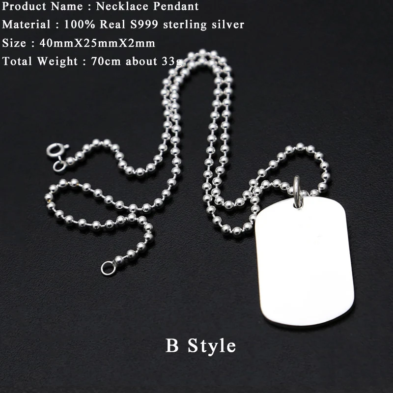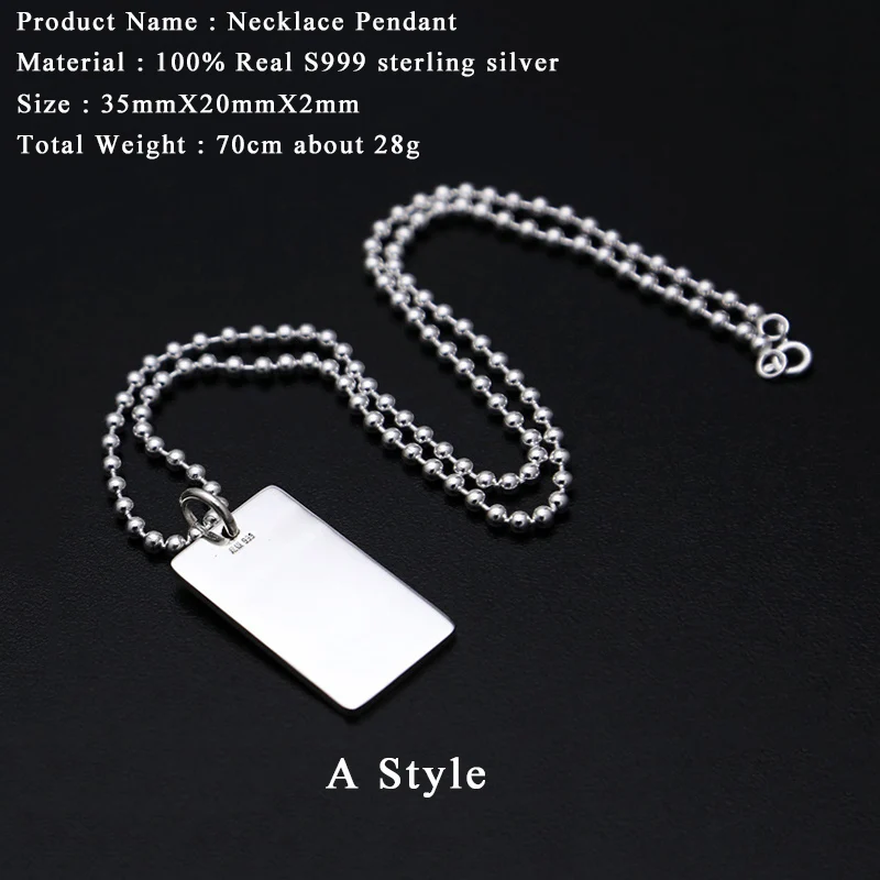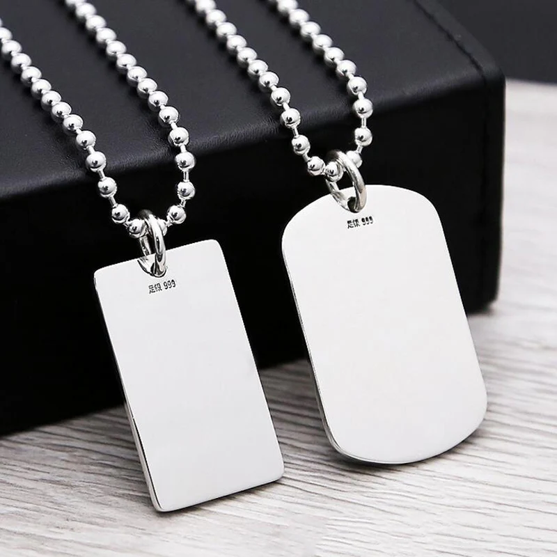 Pet Friendly 2017 Women Men Necklace 999 Sterling Silver Jewelry Smooth Soldiers Tag Bead Chain Pendant Necklace Gift Fine Jewelry Fn39 Collection [o7AqCWVy]