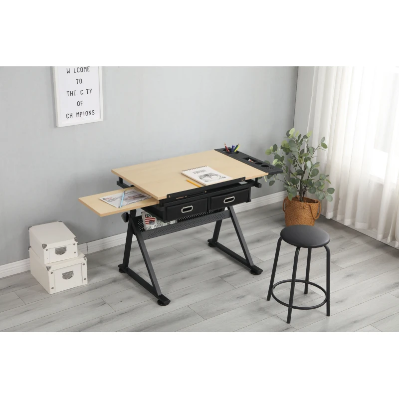 Price Drop Alert Adjustable Drawing Drafting Table Desk With 2 Drawers For Home Office And School With Stool The Table Is Equipped With Stools Deluxe Edition [wfsgGNtB]