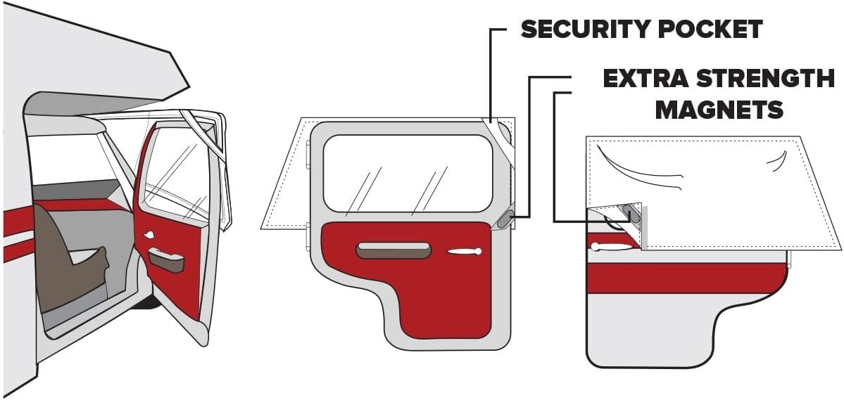 - Secure Fit: Engineered with sewn-in door pockets and robust magnets, this cover holds securely in place, specifically designed for Class C Chevy models from 1972 to 1996.