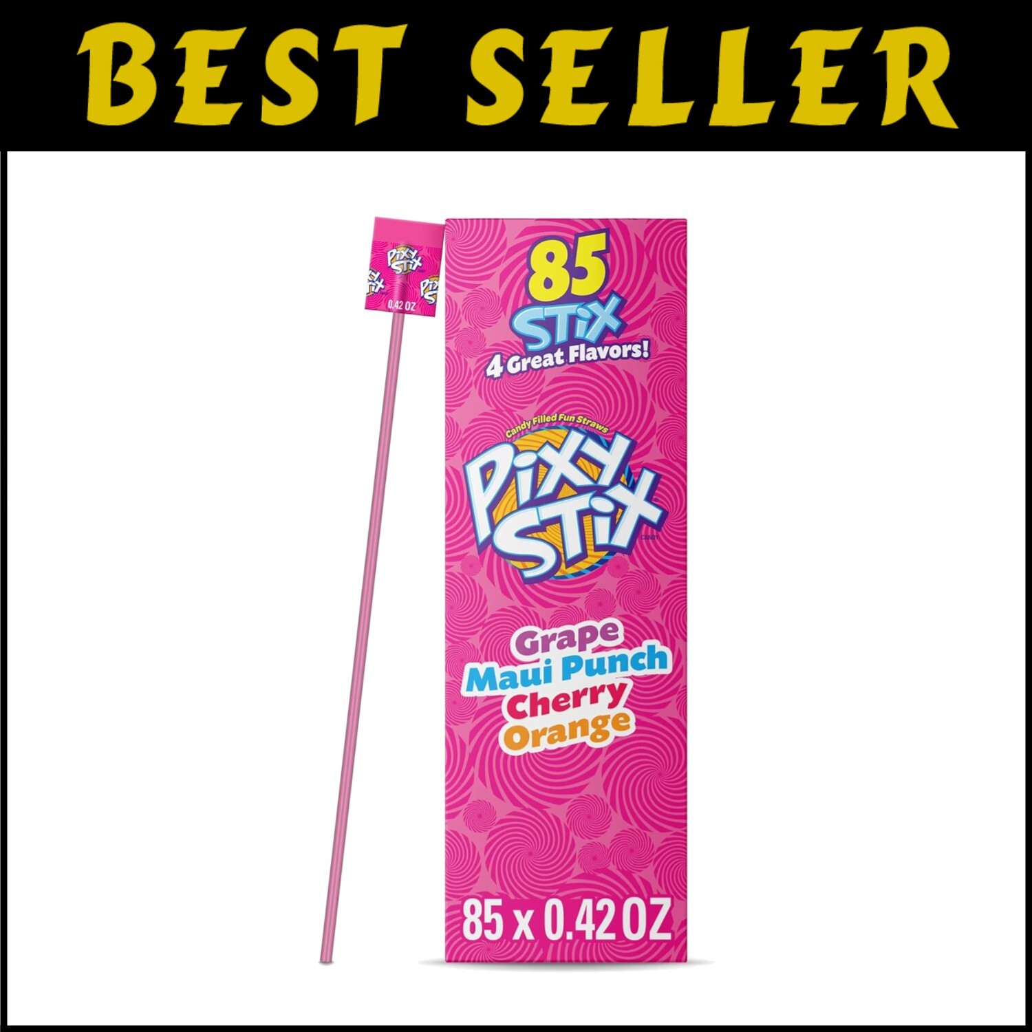 Fruity Goodness: Indulge in a delightful array of flavors with our Pixy Stix Candy Pack (85 ct), delighting your palate with the vibrant tastes of grape, Maui punch, cherry, and orange. These straws are a sweet tooth's ultimate dream, ready to make your taste buds dance with joy.