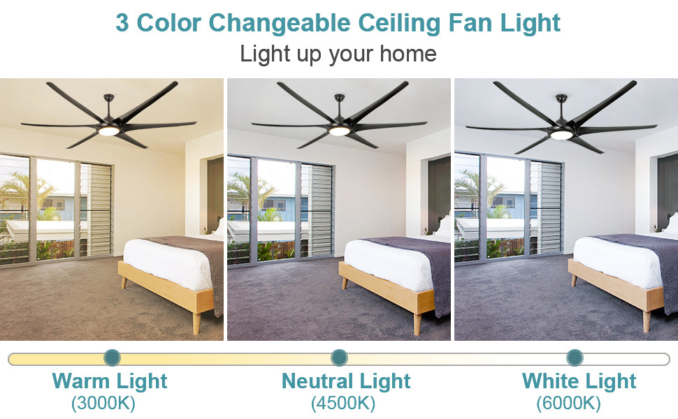 - 【3 Color Temperature LED】This fan has a replaceable 24W LED light and a remote control that controls color temperature from 6000K cool white to 4500K natural to 3000K warm white. It's energy-efficient with a DC motor that saves up to 65% more energy than traditional AC motors. The fan can be used with or without the light, and it comes with a wall holder for the remote.