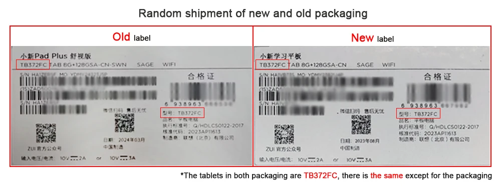 If the label of the tablet box you received is different from the previous one, please don't worry. The tablets in the old and new packages are all TB372FC. Except the label on the package is slightly different, everything else is the same!