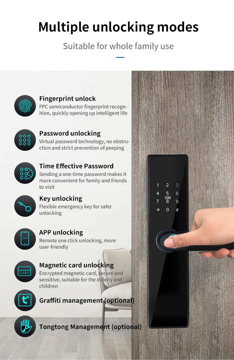 Fingerprint/Password/Swipe Card/key/ttlock tuya app/Combination Unlock