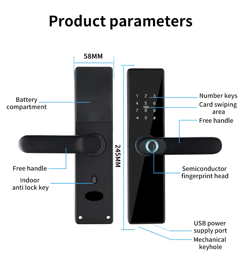 Unlock way: Fingerprint/Password/Swipe Card/WeChat Mini ProgramKey