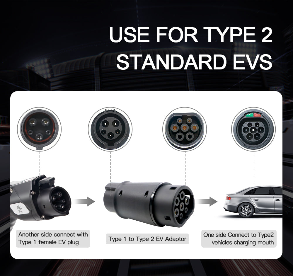 Si tienes un cargador EV con un enchufe de carga Tipo1, pero quieres cargar un coche con un enchufe Tipo2, esto es perfecto para ti. te ayuda a ahorrar dinero en la compra de otro cargador Tipo2.