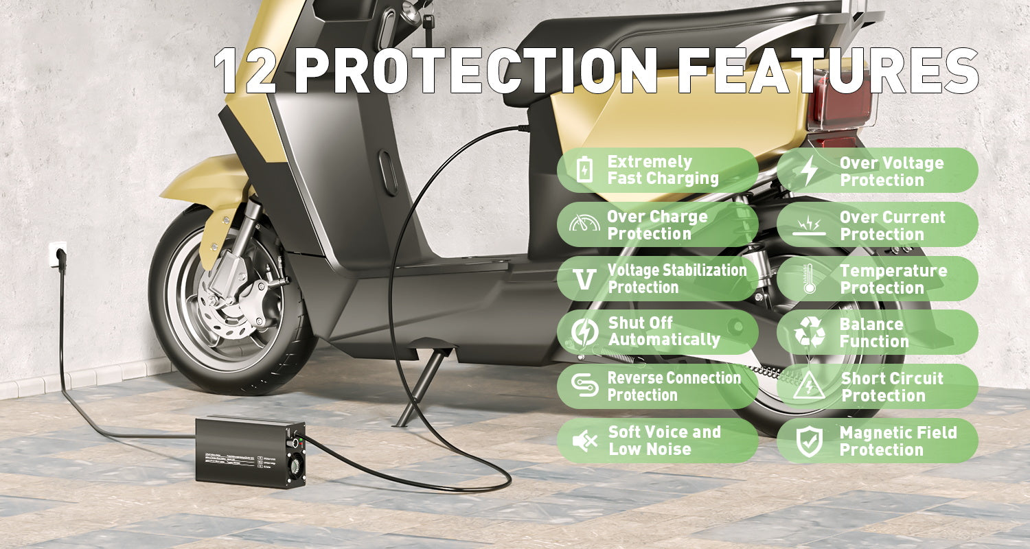 - Adatto per: batteria al litio Li-Ion 12S 44,4 V. (non per batterie al piombo-acido e LiFePO4)