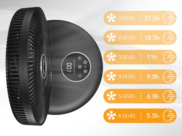 - Battery Operated: With a 12000mAh rechargeable battery, this fan can operate cordlessly for hours on end for true portability and convenience.