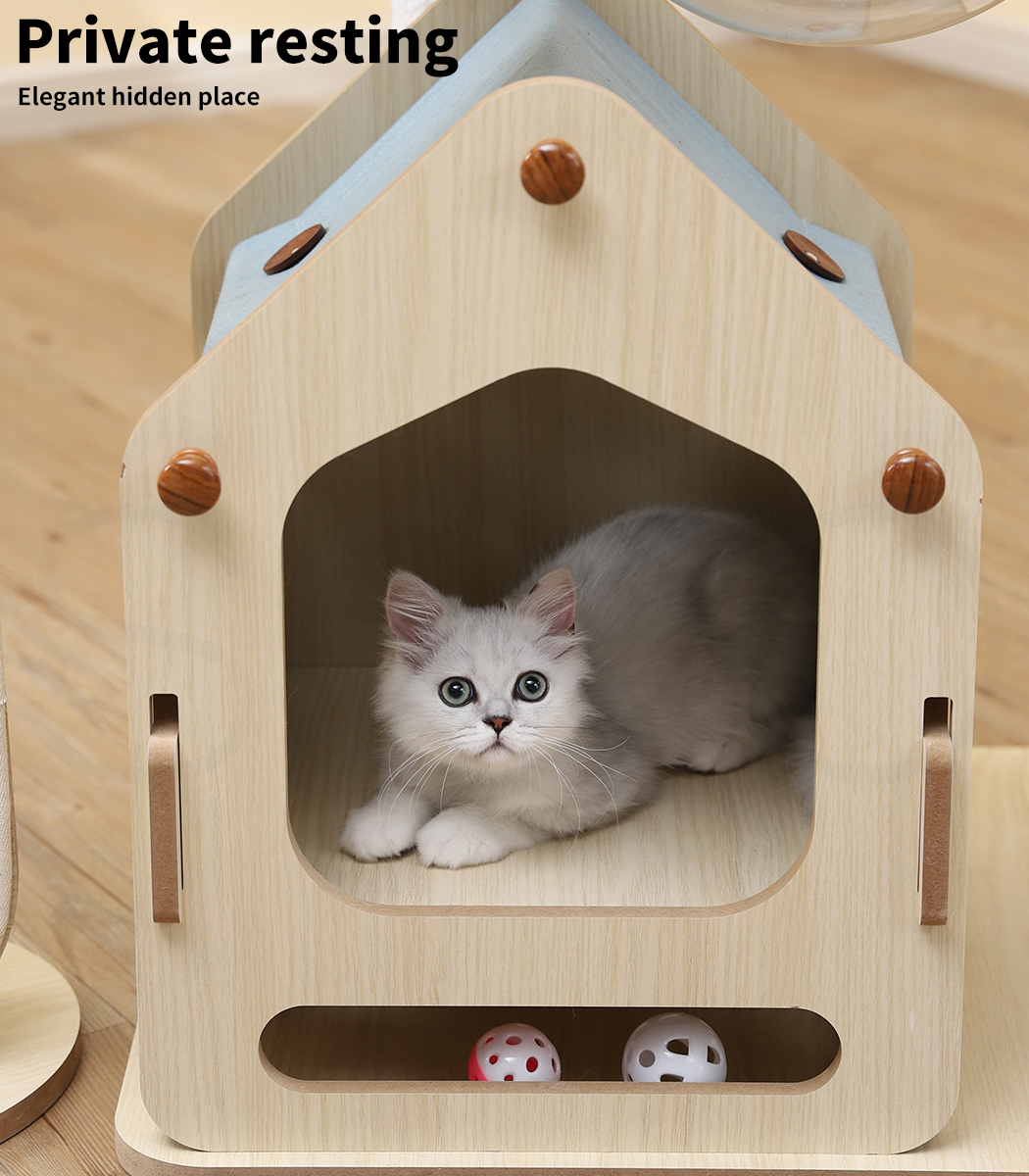 - Sturdy wooden cat tree