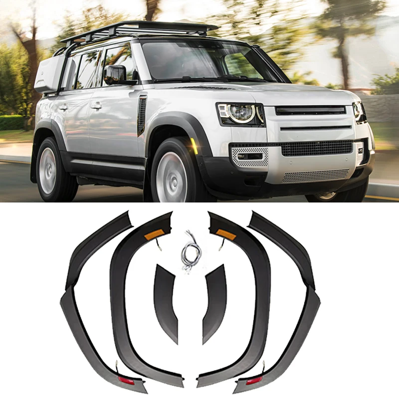 Travel Ready 6pcs Matte Black Widening Wheel Fender Trim Kit Eyebrow Accessories With Led Lights Fit For Land Rover Defender 110 2020-2025 Next Gen [oi9xqtfu]